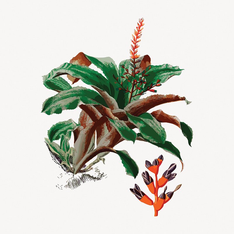 Vintage bromeliad flowering plant, from artworks by Charles Dessalines D'orbigny, vector illustration isolated on white.… https://www.rawpixel.com/image/16891302/vector-green-leaves-flower-plantView license