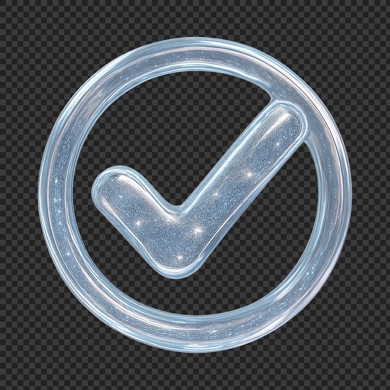 PNG Glossy transparent checkmark symbol. https://www.rawpixel.com/image/23635314/png-glossy-transparent-checkmark-symbolView license