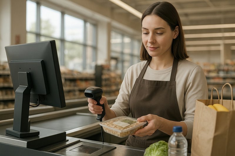 Cashier scanning packaged food item. https://www.rawpixel.com/image/24470452/cashier-scanning-packaged-food-itemView license