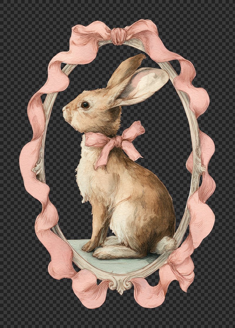 PNG Vintage rabbit portrait with ribbon https://www.rawpixel.com/image/24927380/png-vintage-rabbit-portrait-with-ribbonView license