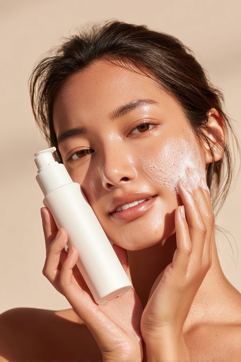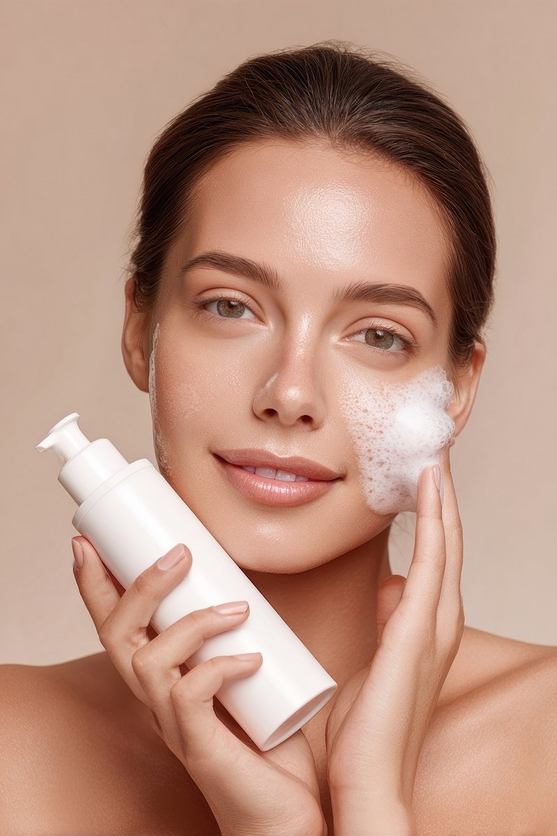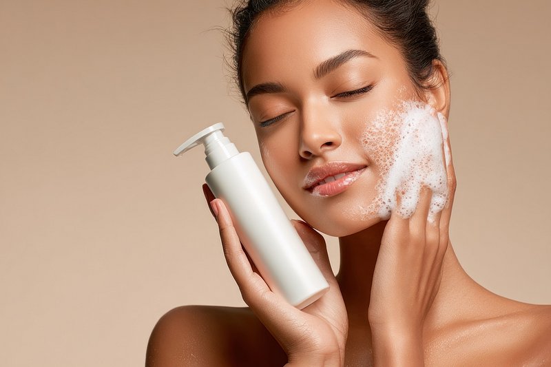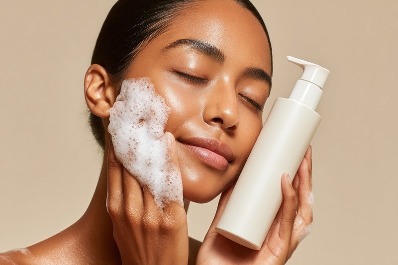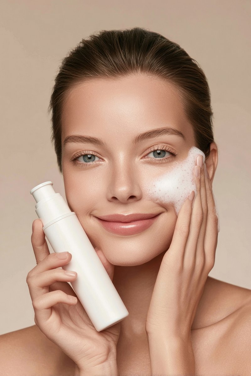 Woman applying facial cleanser foam. https://www.rawpixel.com/image/24741535/woman-applying-facial-cleanser-foamView license