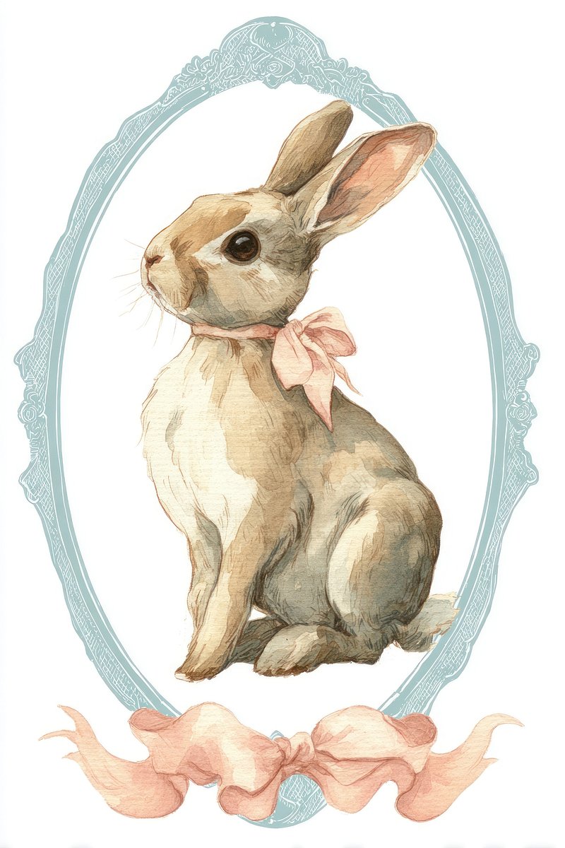 Vintage rabbit illustration with bow. https://www.rawpixel.com/image/24890944/vintage-rabbit-illustration-with-bowView license