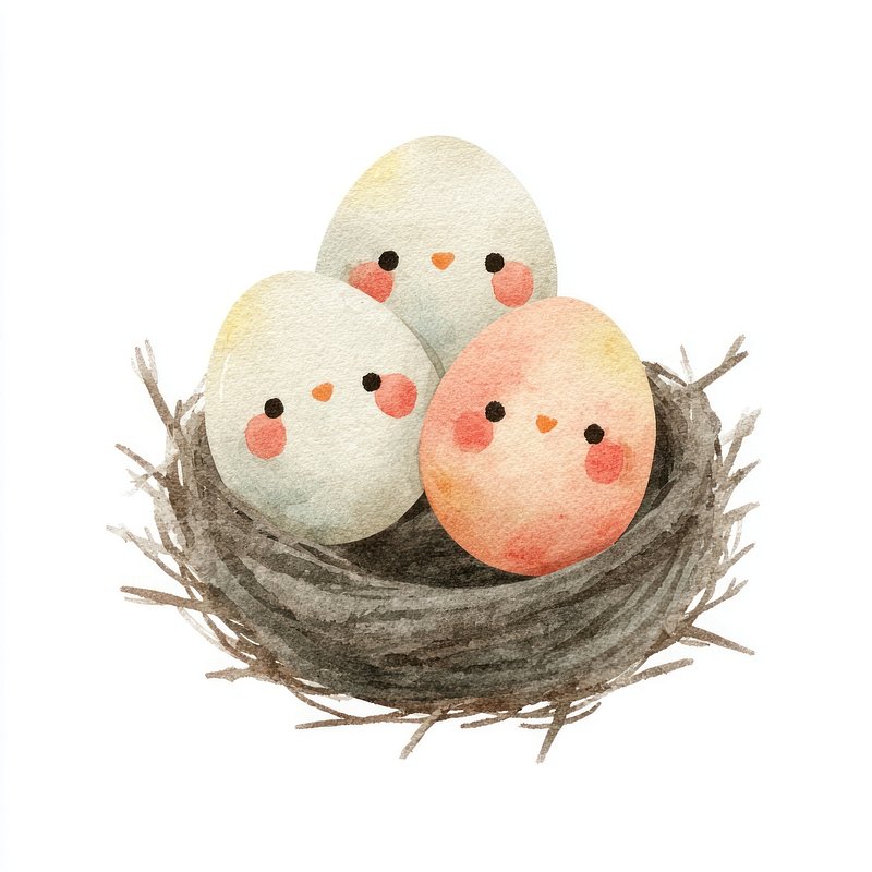PNG Cute watercolor eggs in nest. https://www.rawpixel.com/image/24965347/png-cute-watercolor-eggs-nestView license