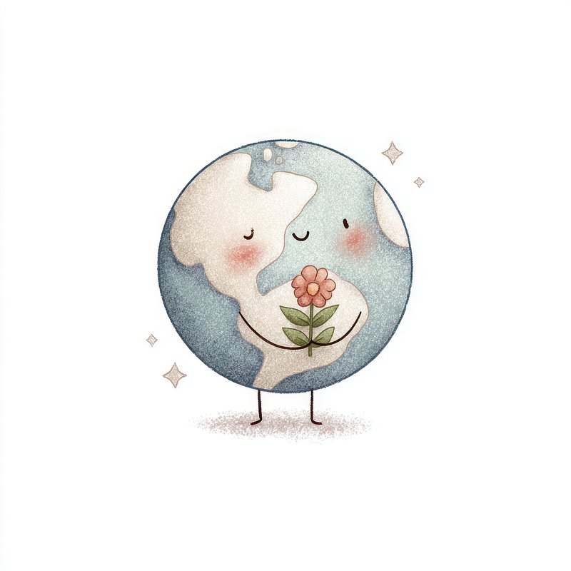 Cute Earth holding flower illustration. https://www.rawpixel.com/image/25253912/cute-earth-holding-flower-illustrationView license