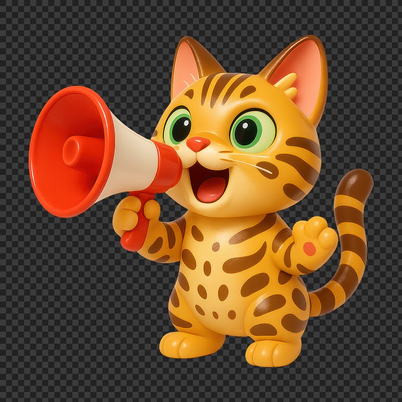 PNG Cute cartoon cat with megaphone https://www.rawpixel.com/image/17990245/png-cute-cartoon-cat-with-megaphoneView license