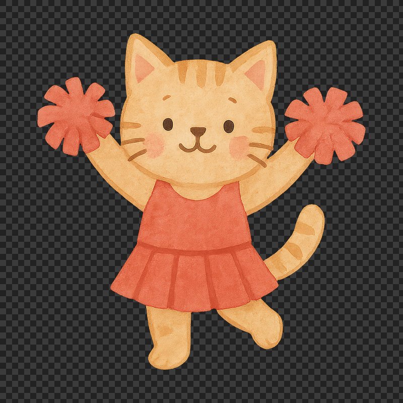 PNG Cute cat cheerleader illustration. https://www.rawpixel.com/image/18997815/png-cute-cat-cheerleader-illustrationView license