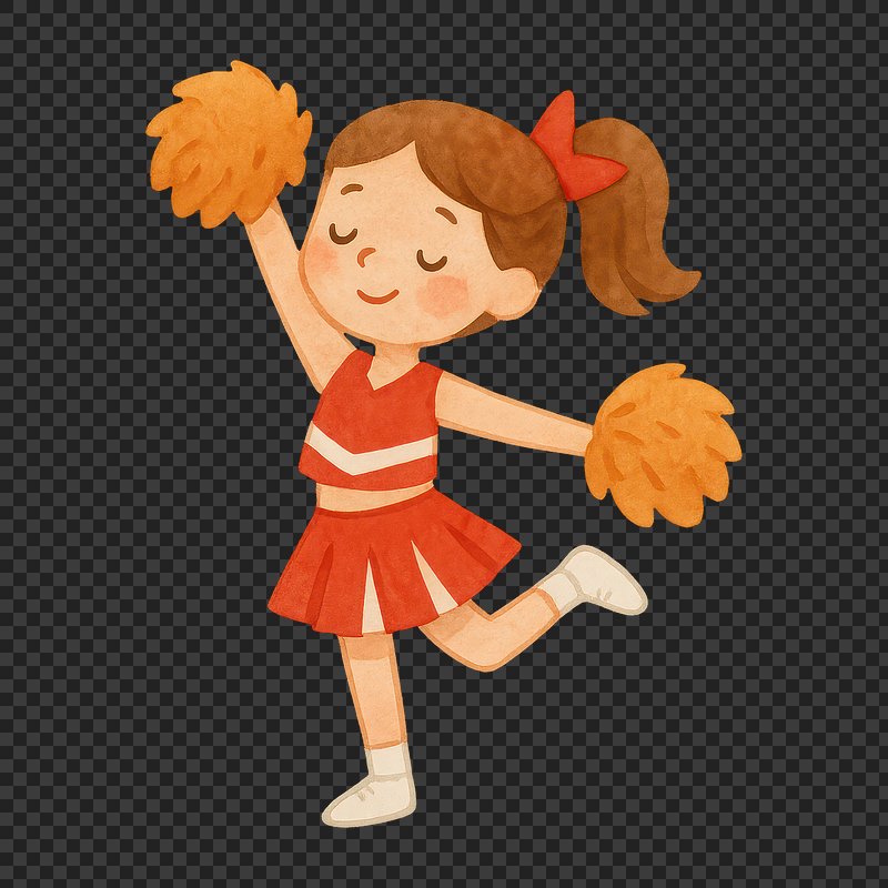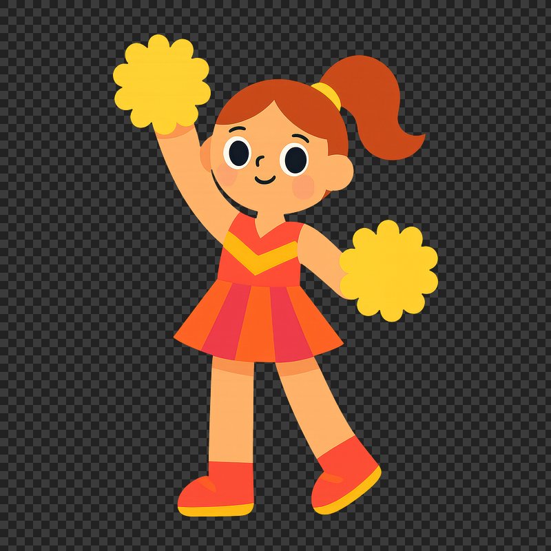 PNG Cheerful cartoon cheerleader with pom-poms. https://www.rawpixel.com/image/20149850/png-cheerful-cartoon-cheerleader-with-pom-pomsView license