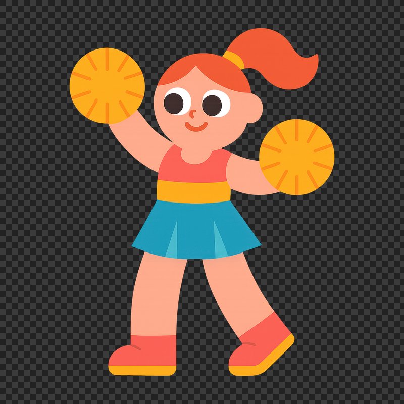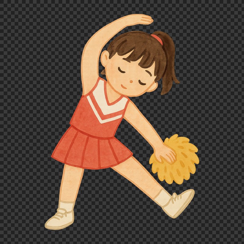 PNG Cheerful cartoon cheerleader exercising. https://www.rawpixel.com/image/18820692/png-cheerful-cartoon-cheerleader-exercisingView license