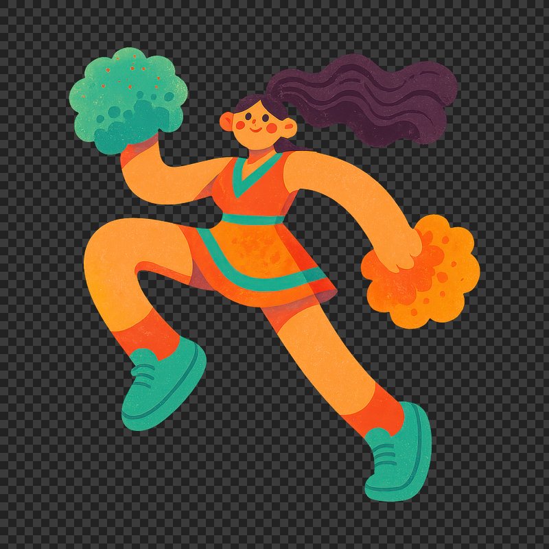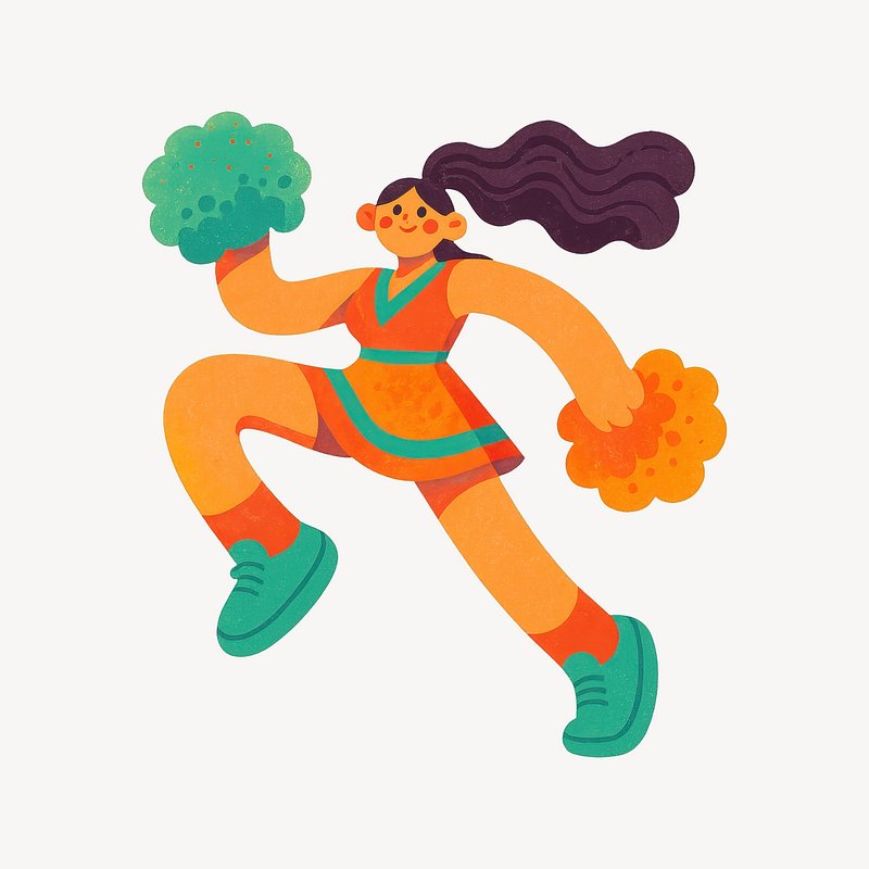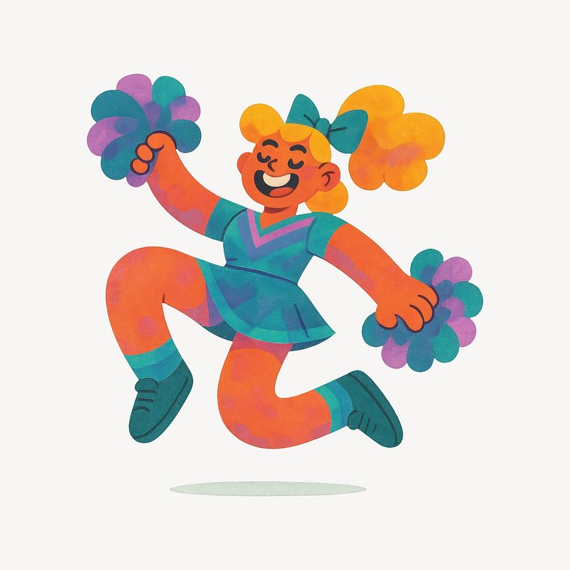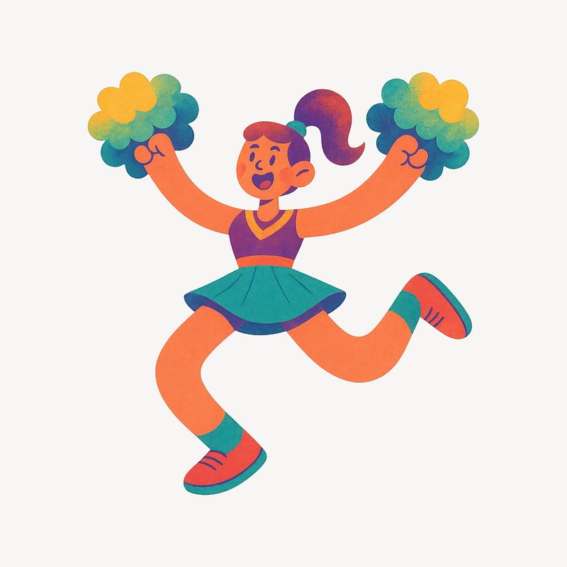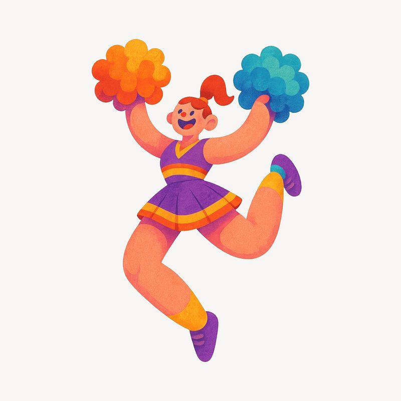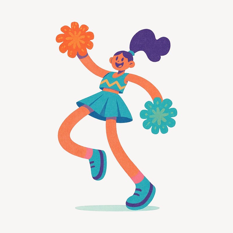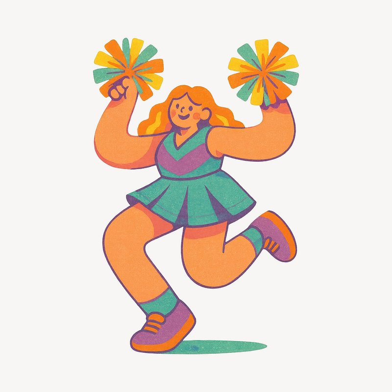 Cheerful cartoon cheerleader with pom-poms. https://www.rawpixel.com/image/20733298/cheerful-cartoon-cheerleader-with-pom-pomsView license