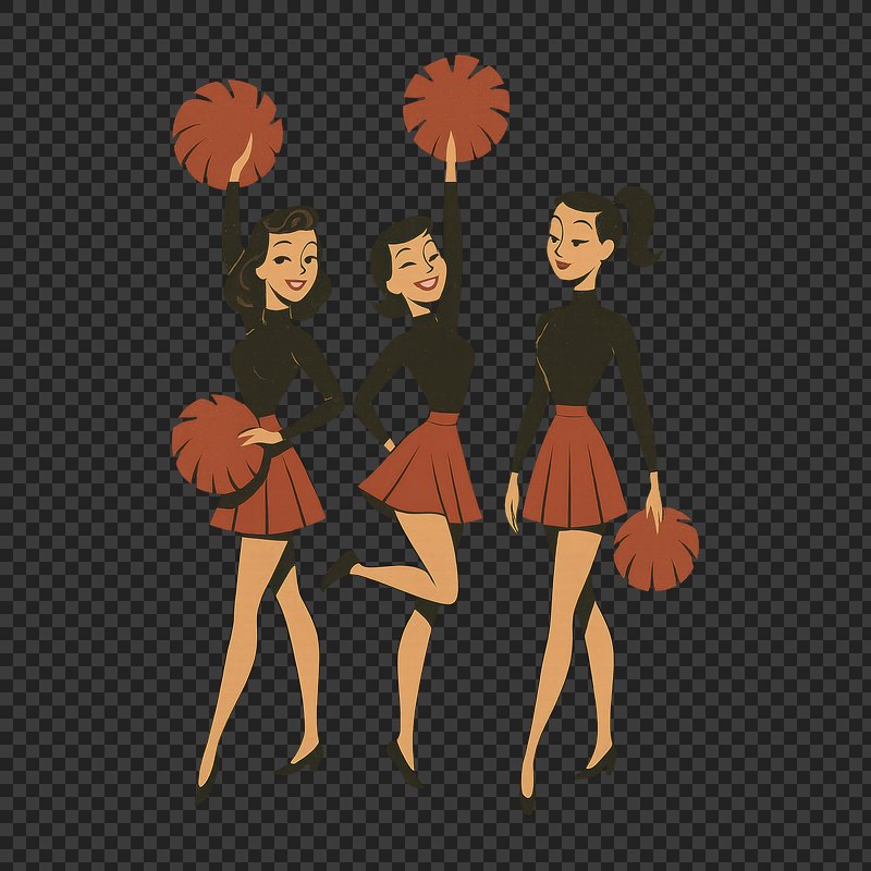 Cartoon cheerleaders with pom-poms. https://www.rawpixel.com/image/21867784/cartoon-cheerleaders-with-pom-pomsView license