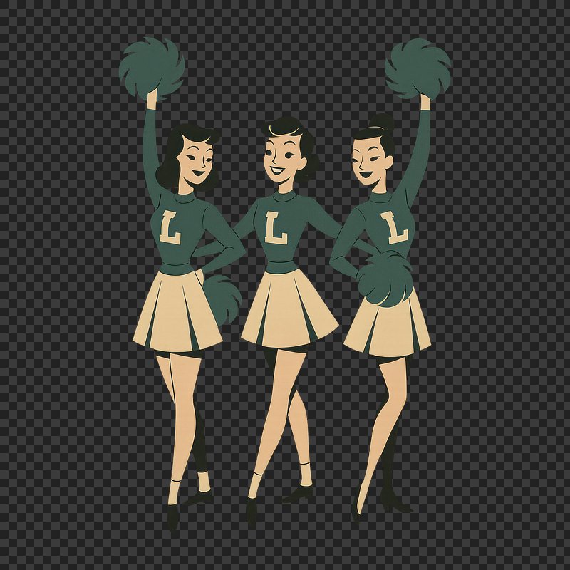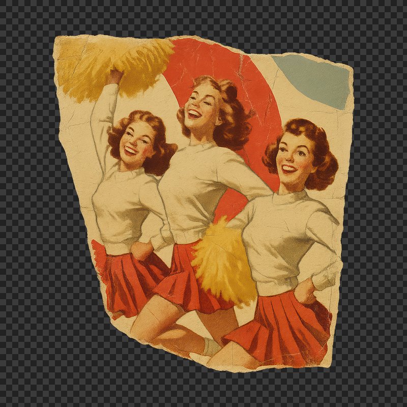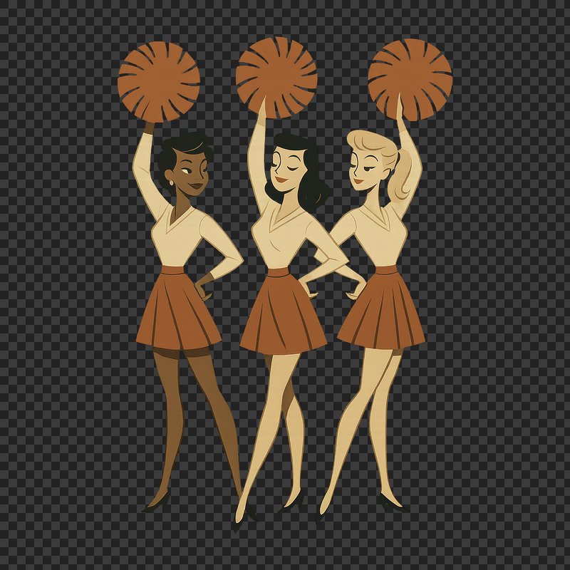 PNG Vintage cheerleaders with pom-poms. https://www.rawpixel.com/image/24403832/png-vintage-cheerleaders-with-pom-pomsView license