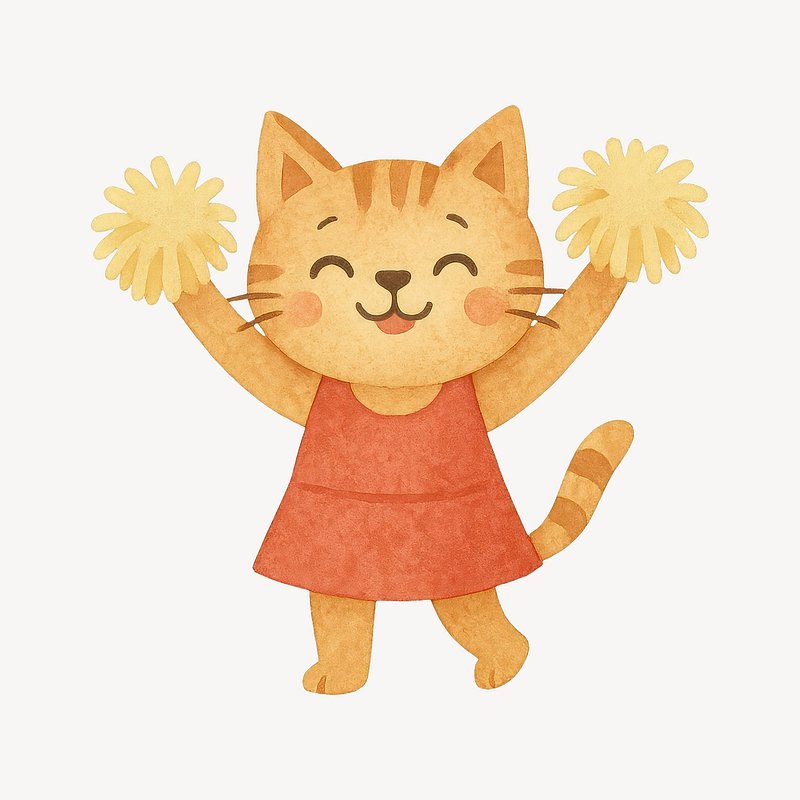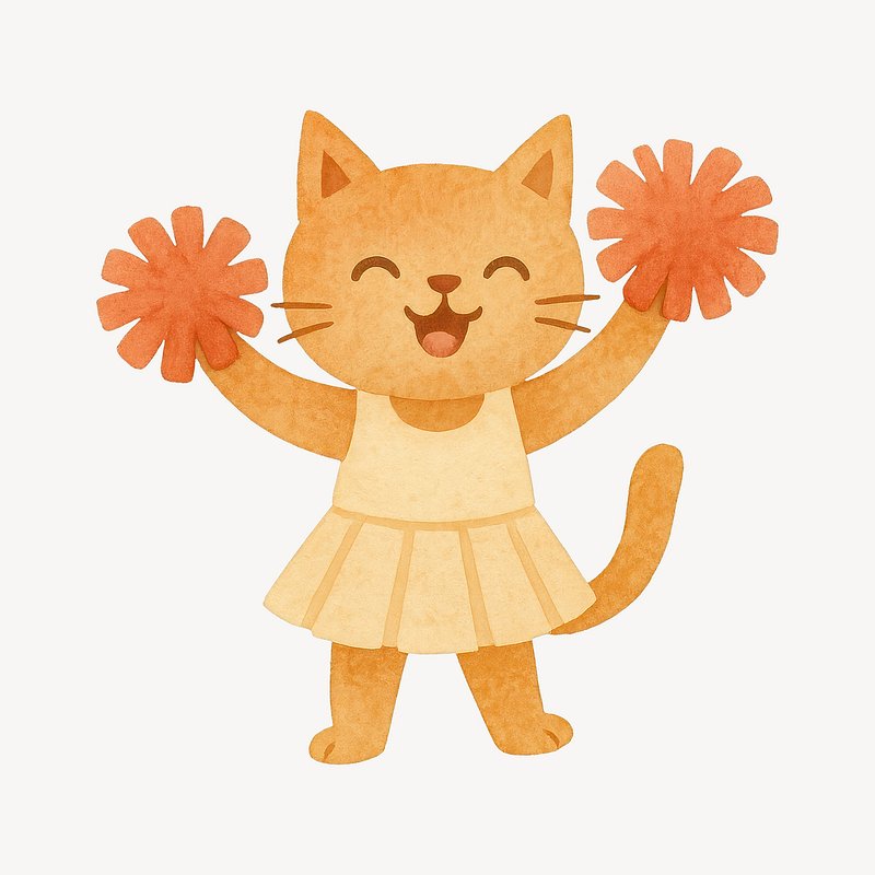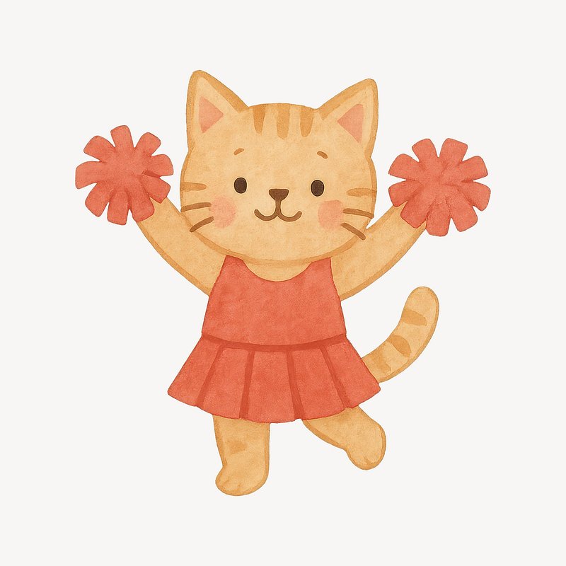 Cute cat cheerleader illustration. https://www.rawpixel.com/image/19457140/cute-cat-cheerleader-illustrationView license