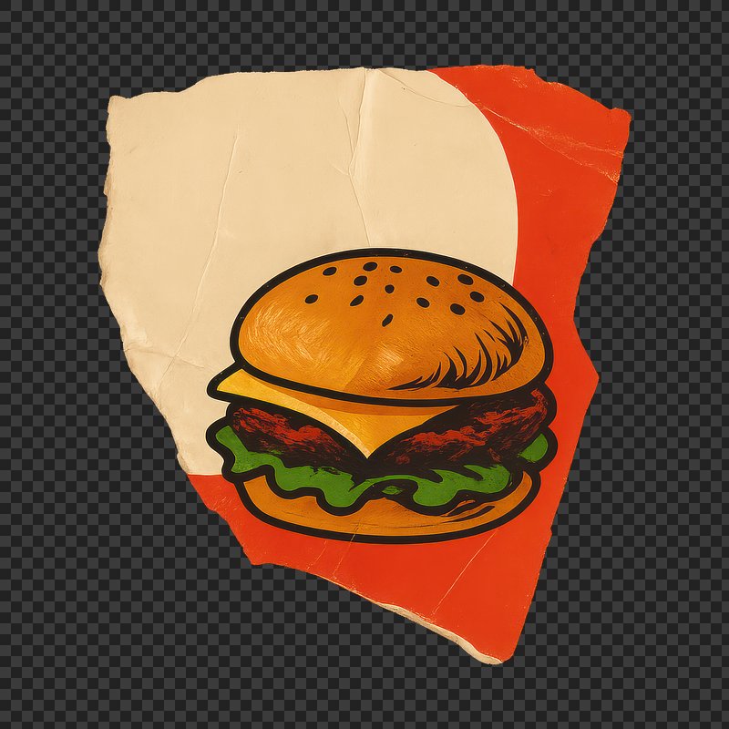 Burger collage element, cute illustration vector. https://www.rawpixel.com/image/6780474/vector-sticker-public-domain-illustrationsView license