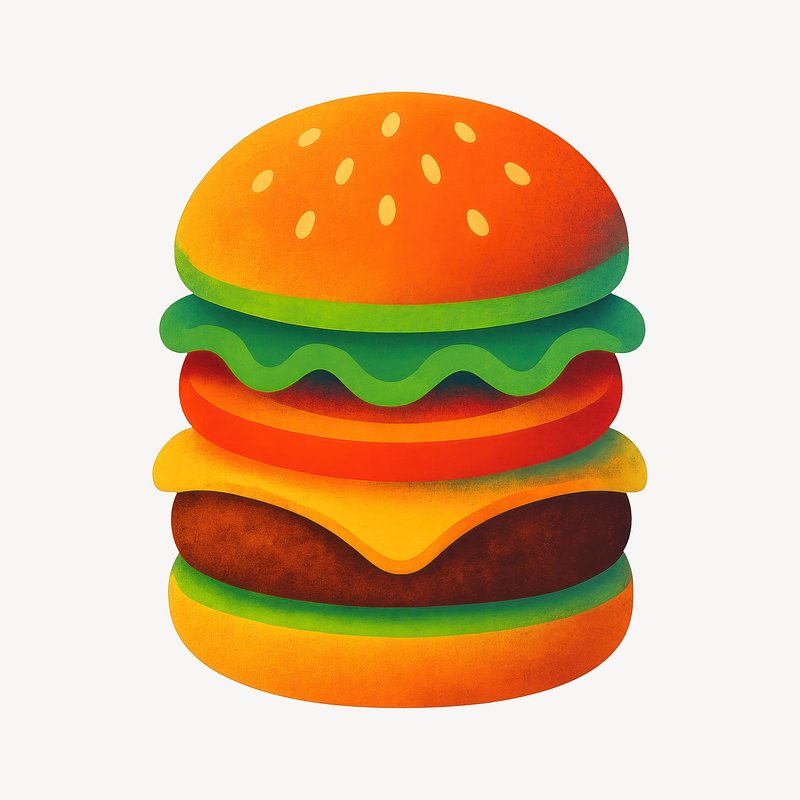 Colorful delicious cartoon burger https://www.rawpixel.com/image/23889013/colorful-delicious-cartoon-burgerView license