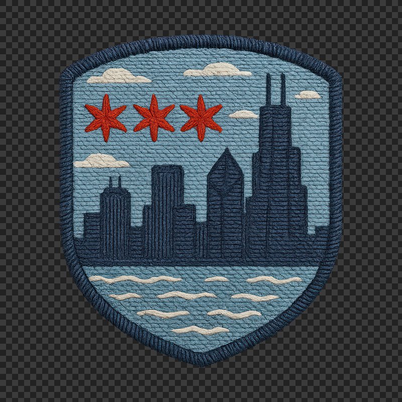 PNG Chicago skyline embroidered patch https://www.rawpixel.com/image/24369900/png-chicago-skyline-embroidered-patchView license