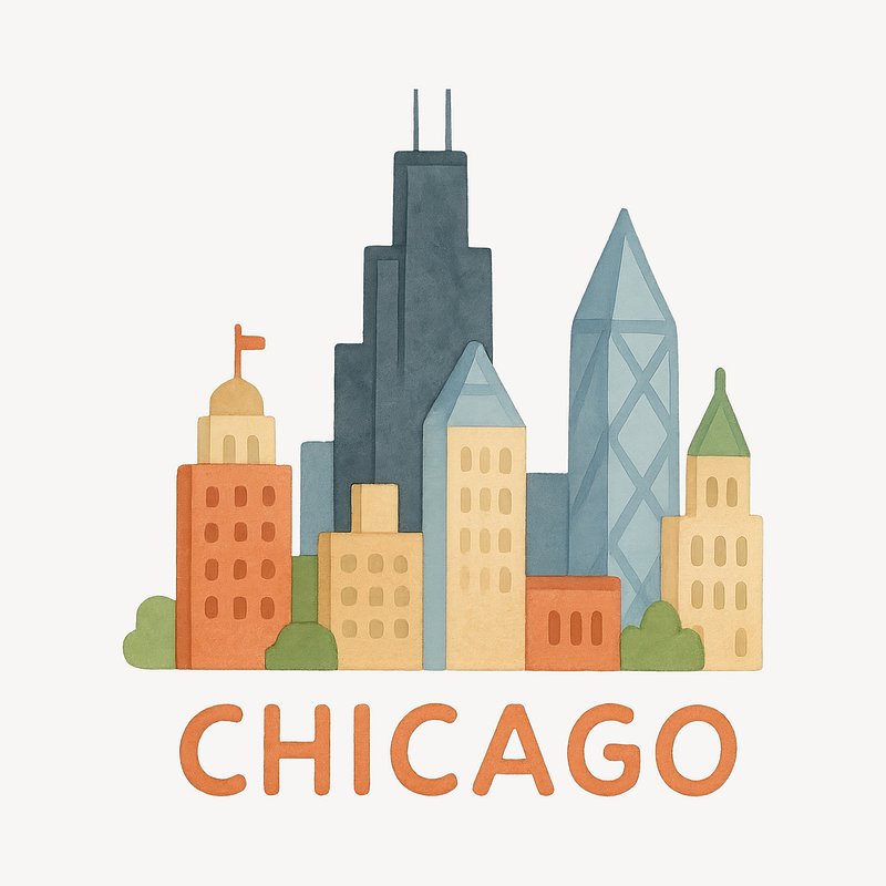 Colorful Chicago skyline illustration. https://www.rawpixel.com/image/19375994/colorful-chicago-skyline-illustrationView license