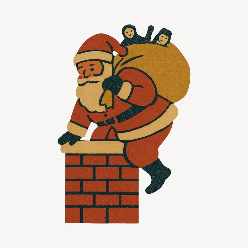 Santa climbing chimney illustration. https://www.rawpixel.com/image/23047111/santa-climbing-chimney-illustrationView license