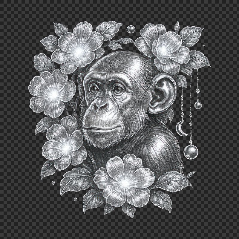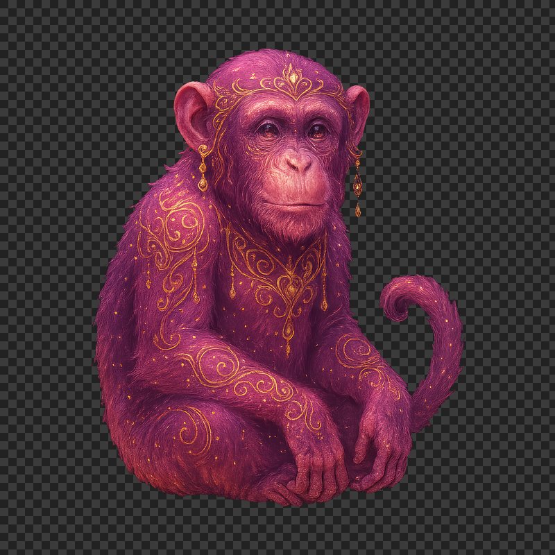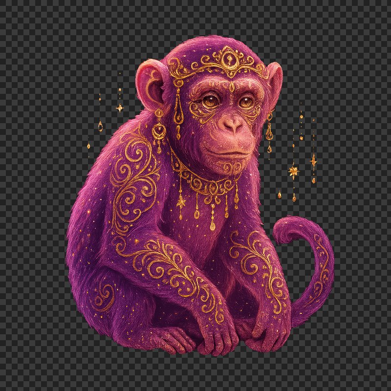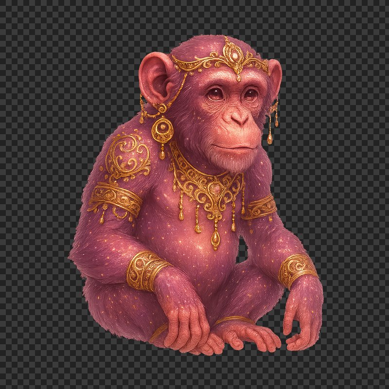 PNG Majestic monkey adorned with jewelry. https://www.rawpixel.com/image/23993665/png-majestic-monkey-adorned-with-jewelryView license