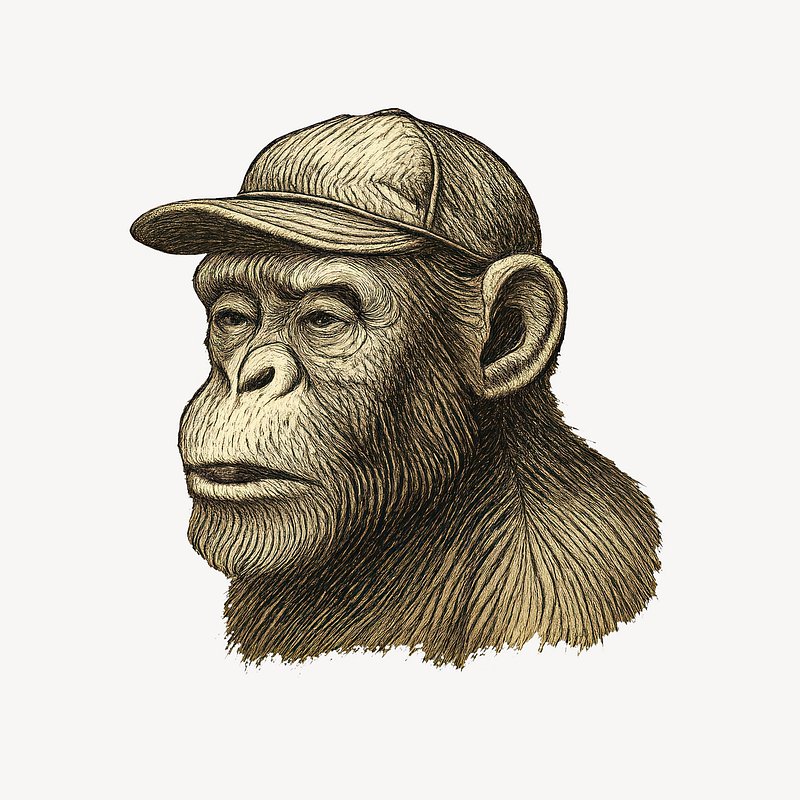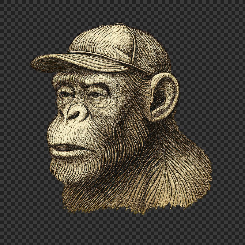 PNG Chimpanzee wearing stylish cap. https://www.rawpixel.com/image/24131534/png-chimpanzee-wearing-stylish-capView license