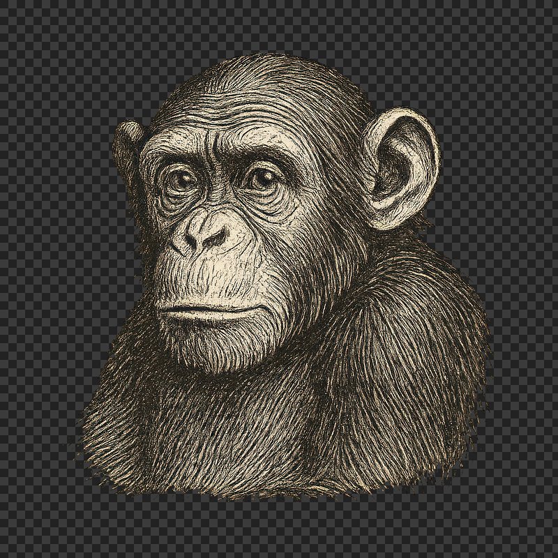 Detailed chimpanzee illustration PNG. https://www.rawpixel.com/image/24767719/detailed-chimpanzee-illustration-pngView license