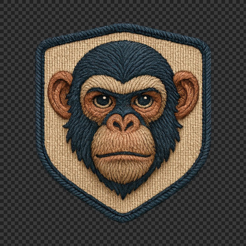 PNG Embroidered chimpanzee badge illustration. https://www.rawpixel.com/image/24373499/png-embroidered-chimpanzee-badge-illustrationView license