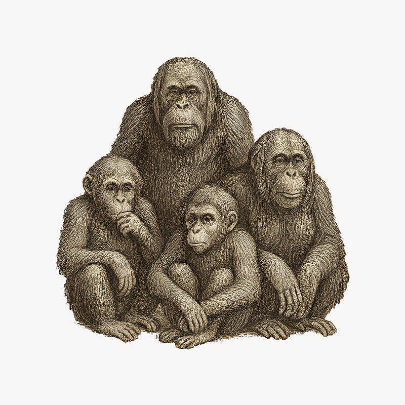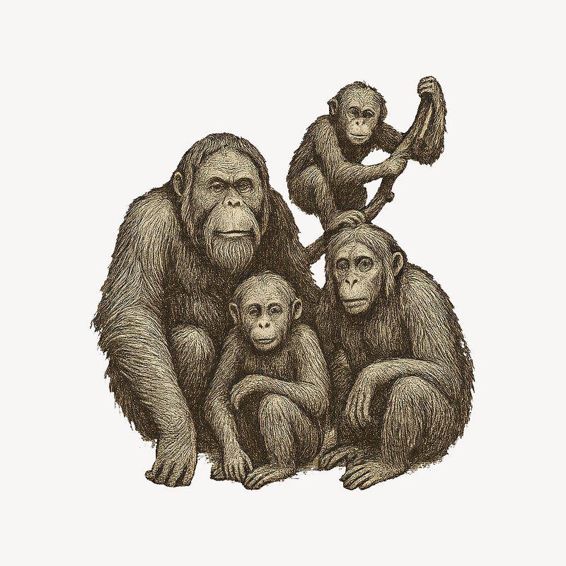 Vintage chimpanzee family illustration https://www.rawpixel.com/image/24346124/vintage-chimpanzee-family-illustrationView license