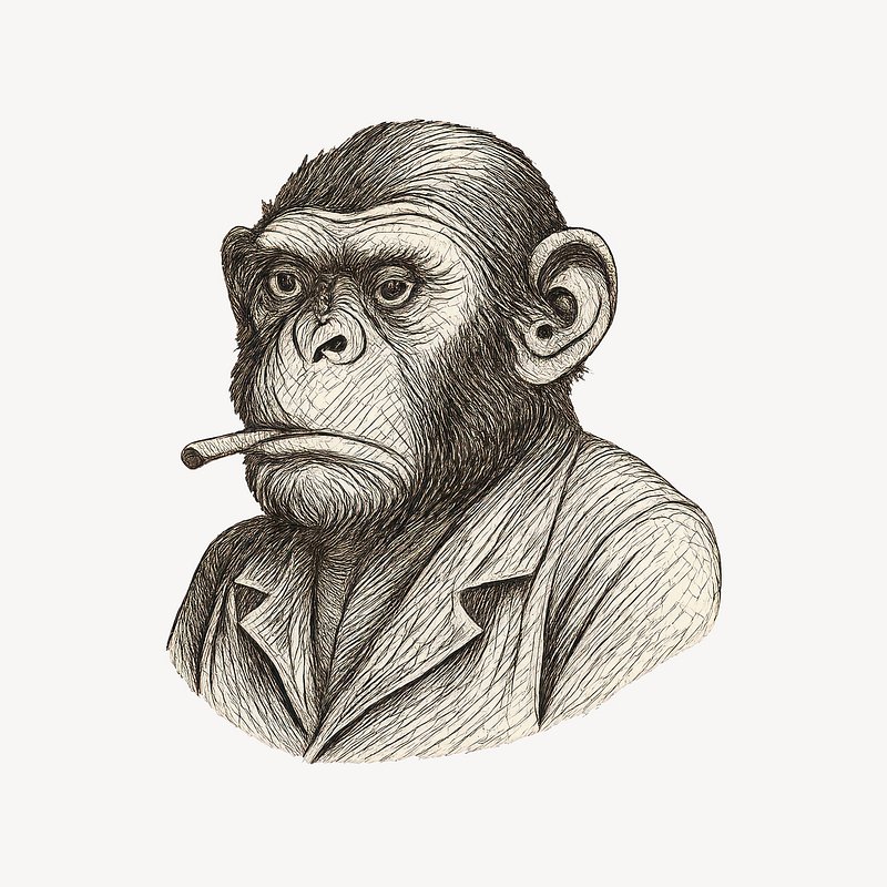 Vintage chimpanzee smoking illustration https://www.rawpixel.com/image/24349039/vintage-chimpanzee-smoking-illustrationView license