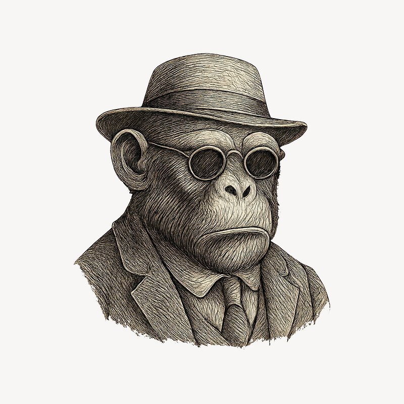 Stylish chimpanzee in vintage attire. https://www.rawpixel.com/image/24347885/stylish-chimpanzee-vintage-attireView license