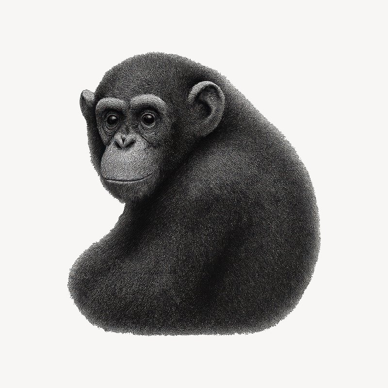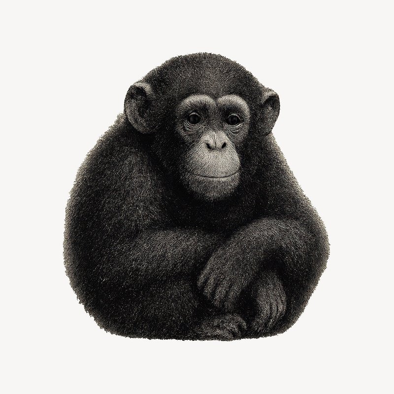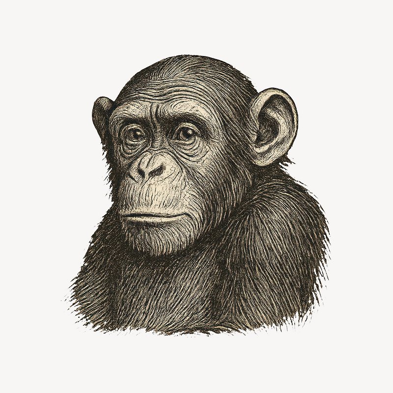 Detailed chimpanzee illustration on white. https://www.rawpixel.com/image/24764854/detailed-chimpanzee-illustration-whiteView license