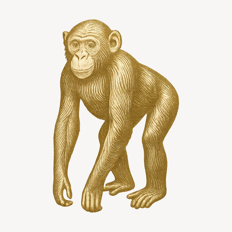 Golden outline chimpanzee illustration https://www.rawpixel.com/image/24537091/golden-outline-chimpanzee-illustrationView license