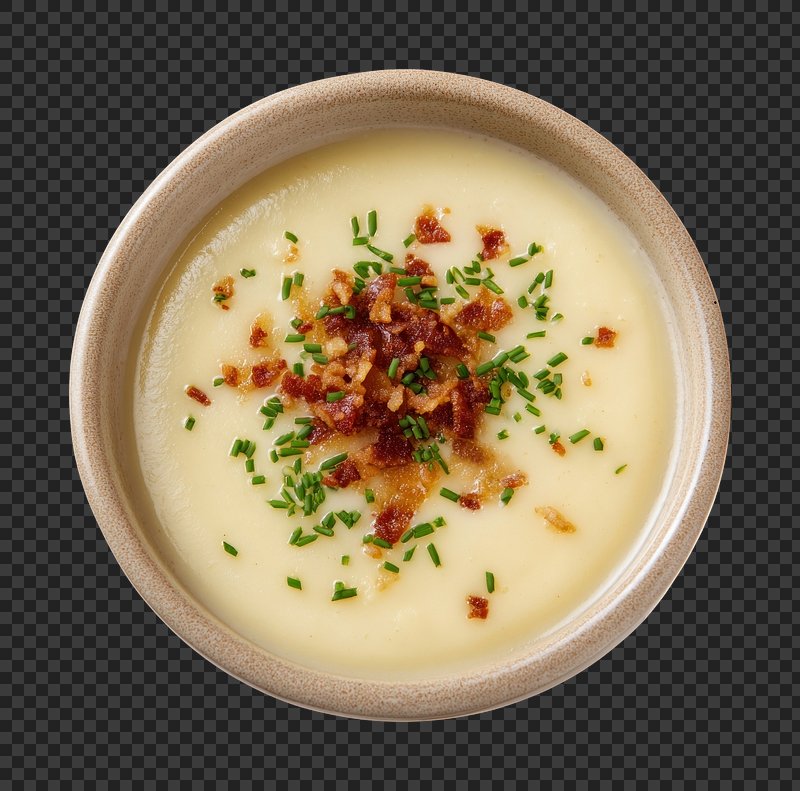 PNG Creamy potato soup with bacon. https://www.rawpixel.com/image/24018293/png-creamy-potato-soup-with-baconView license