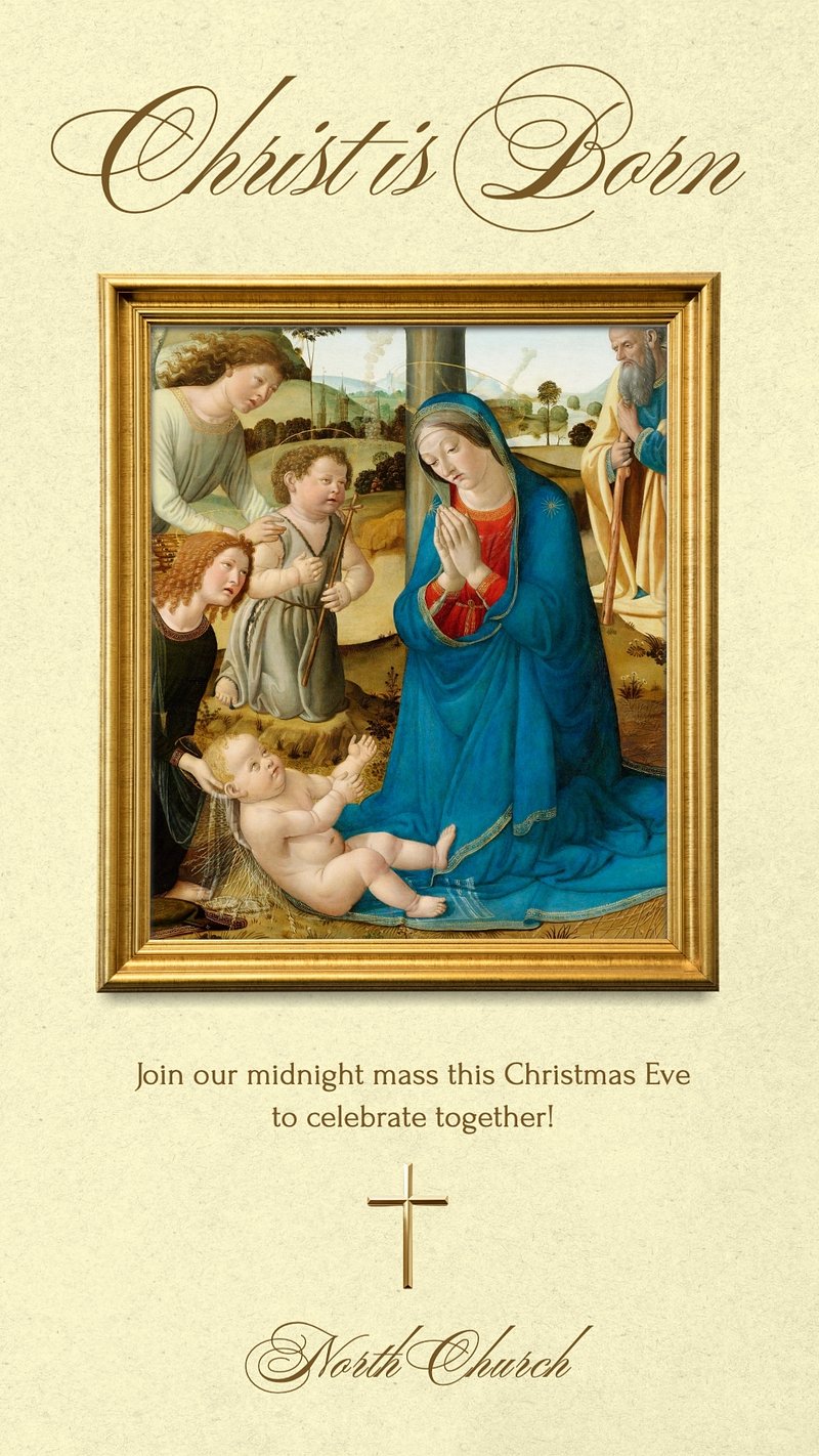 Christmas eve mass Instagram story template, editable design, original art illustration from Cornelis Bloemaert https://www.rawpixel.com/image/24788023/image-border-jesus-paperView license