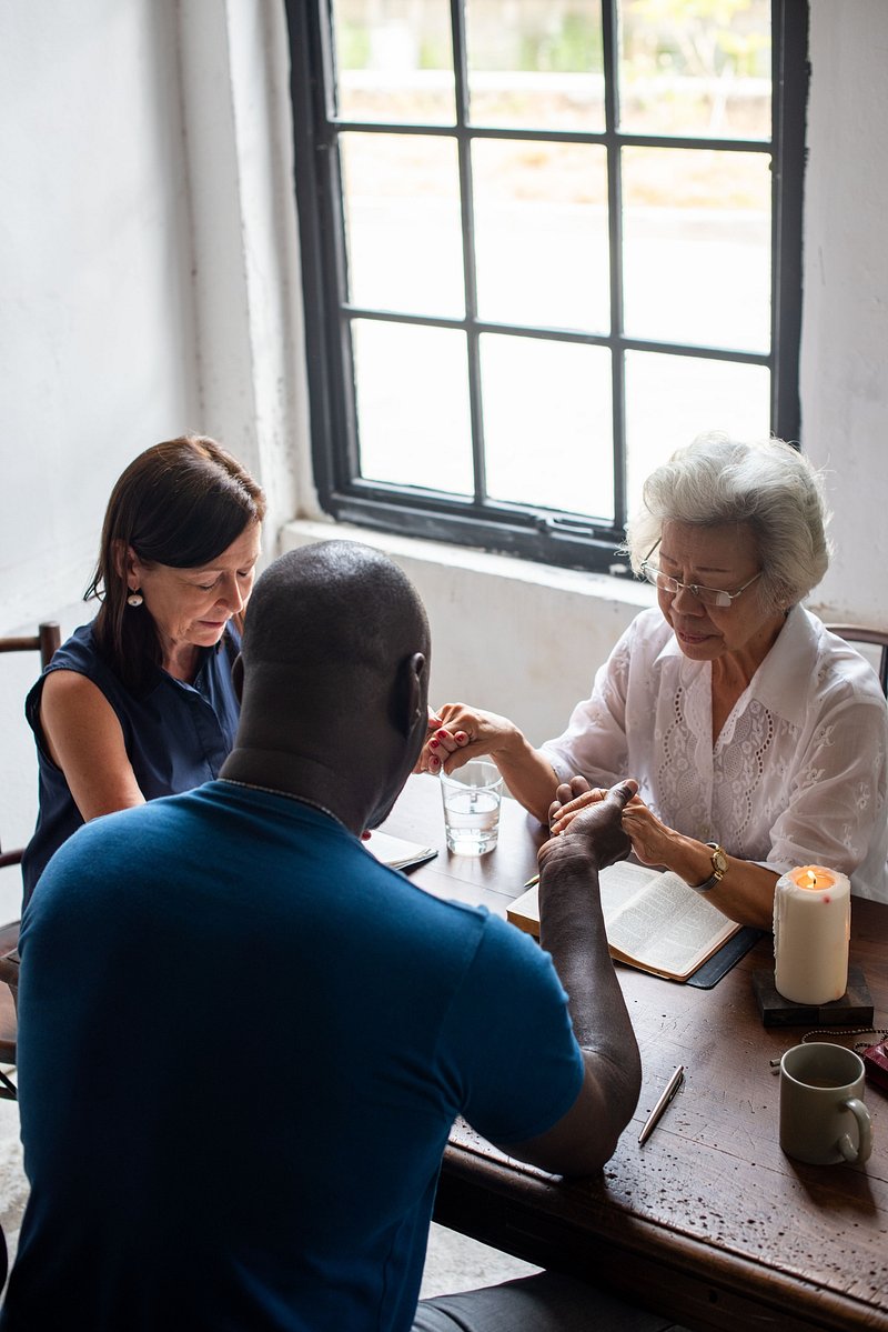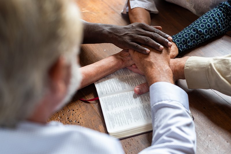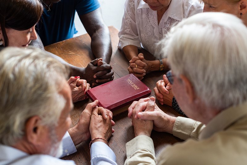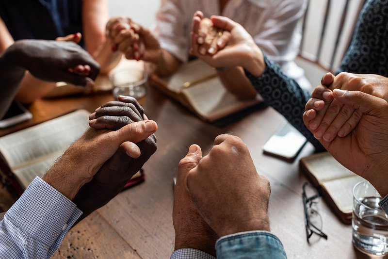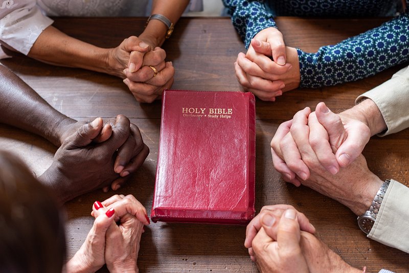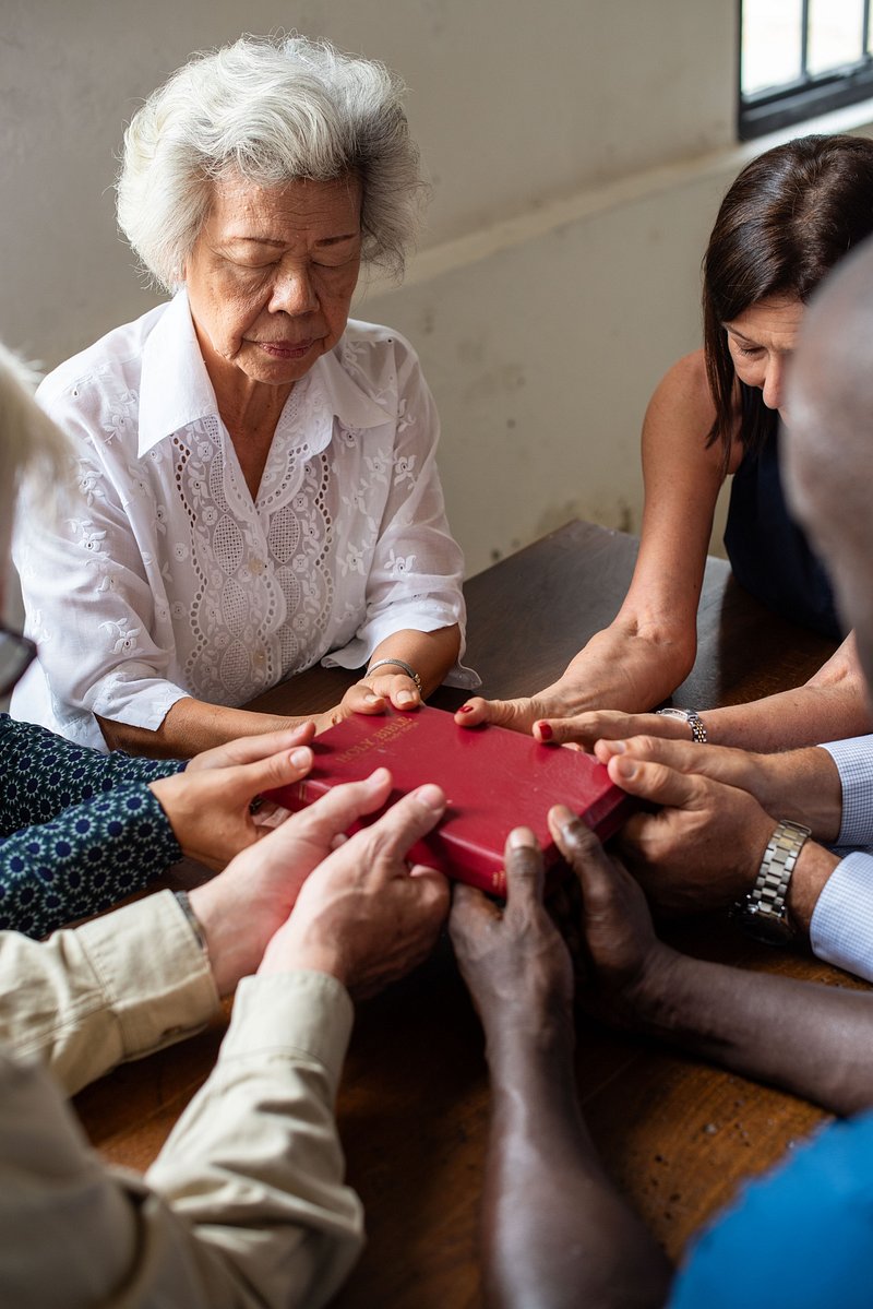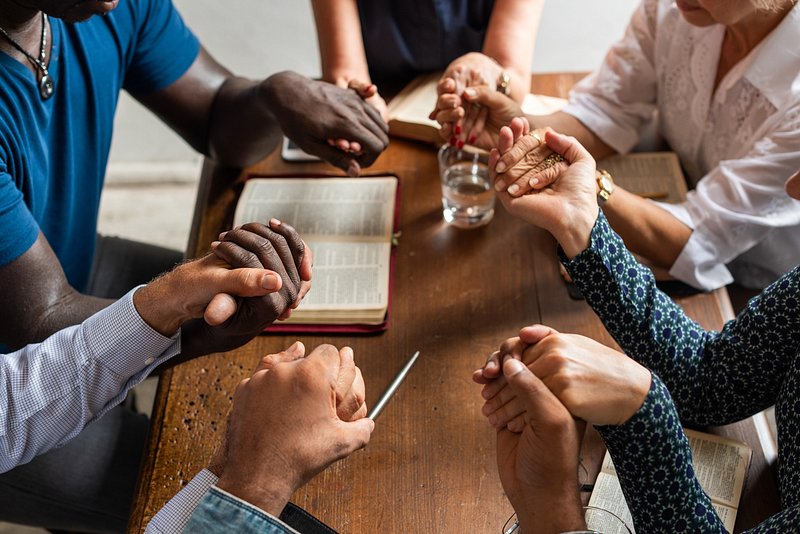 Group prayer around Bible https://www.rawpixel.com/image/26098746/group-prayer-around-bibleView license