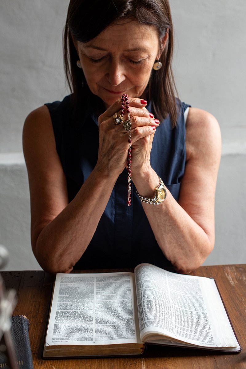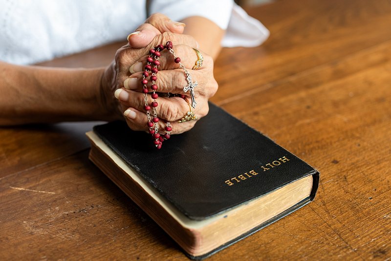 Woman praying with rosary beads. https://www.rawpixel.com/image/26012191/woman-praying-with-rosary-beadsView license