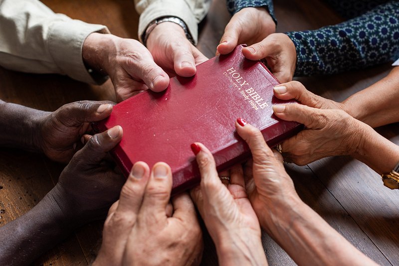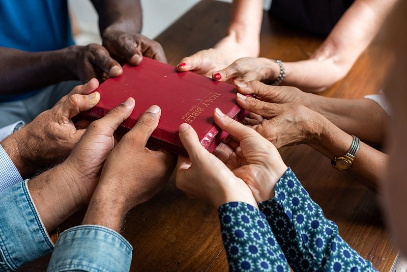 Hands united around Bible. https://www.rawpixel.com/image/26012162/hands-united-around-bibleView license