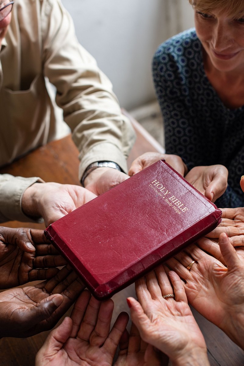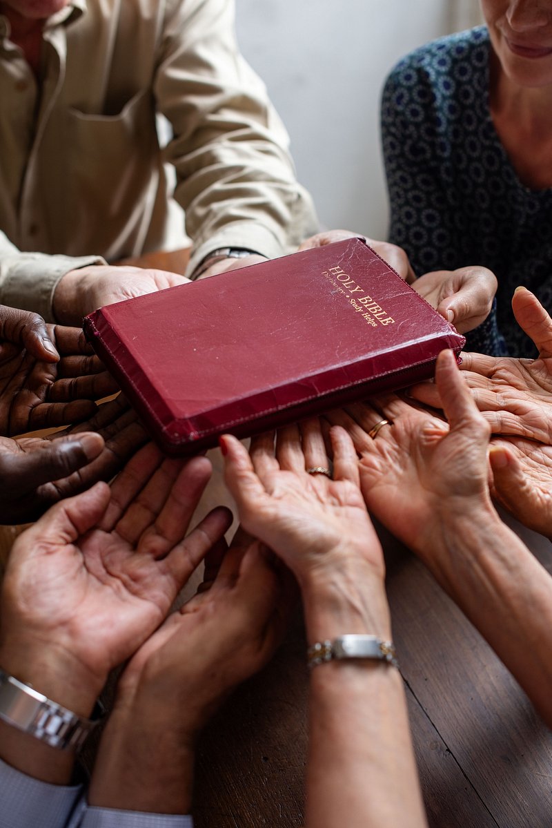 Diverse hands holding Bible https://www.rawpixel.com/image/26083501/diverse-hands-holding-bibleView license