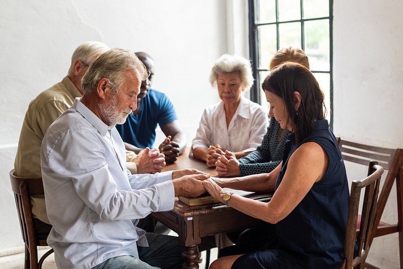 Elderly group praying together https://www.rawpixel.com/image/26098664/elderly-group-praying-togetherView license