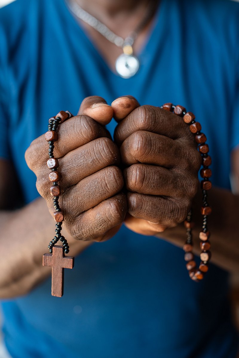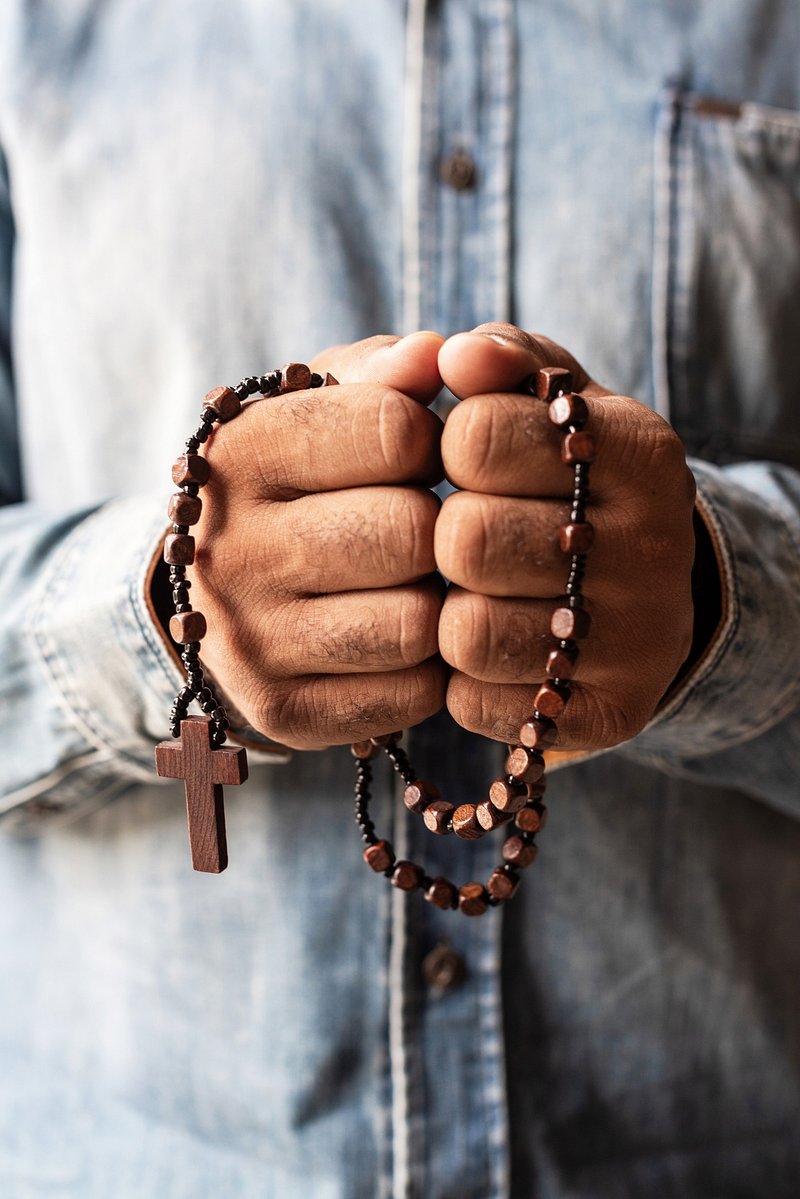 Hands holding wooden rosary beads https://www.rawpixel.com/image/26012047/hands-holding-wooden-rosary-beadsView license