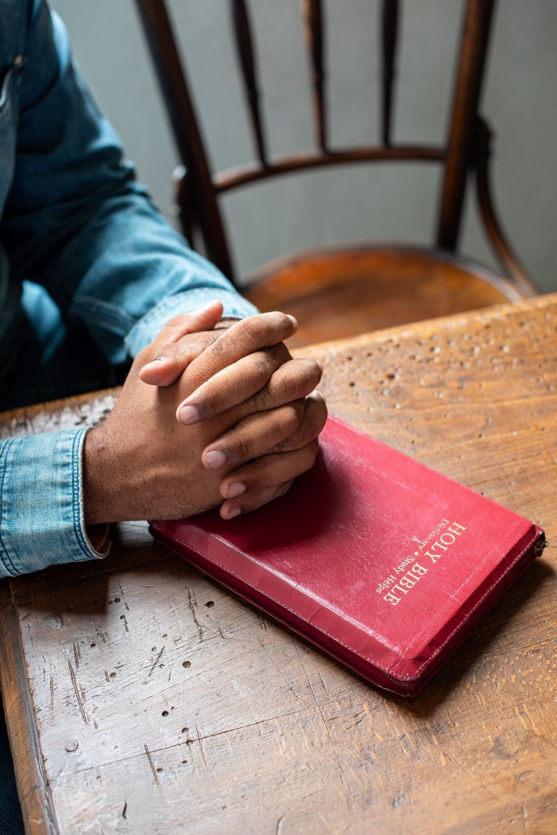 Hands praying over Bible https://www.rawpixel.com/image/26083514/hands-praying-over-bibleView license