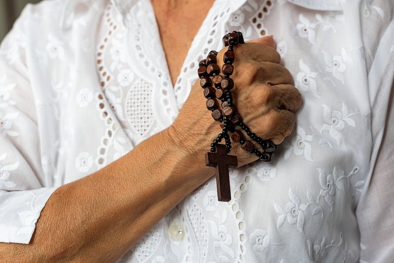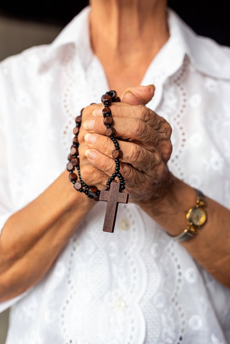 Elderly hands holding rosary beads. https://www.rawpixel.com/image/26012064/elderly-hands-holding-rosary-beadsView license