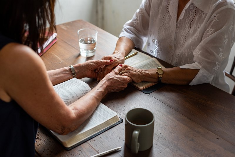 Elderly women praying together https://www.rawpixel.com/image/26098806/elderly-women-praying-togetherView license