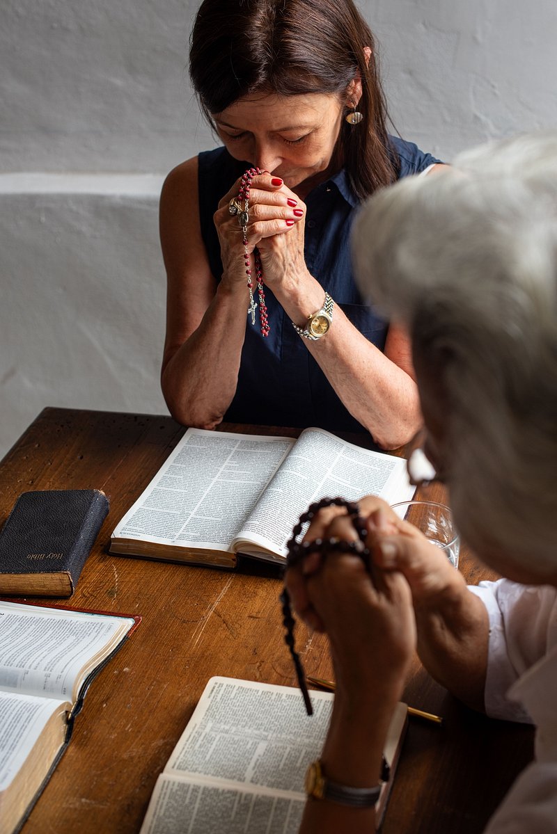 Women praying with rosary beads https://www.rawpixel.com/image/26012055/women-praying-with-rosary-beadsView license
