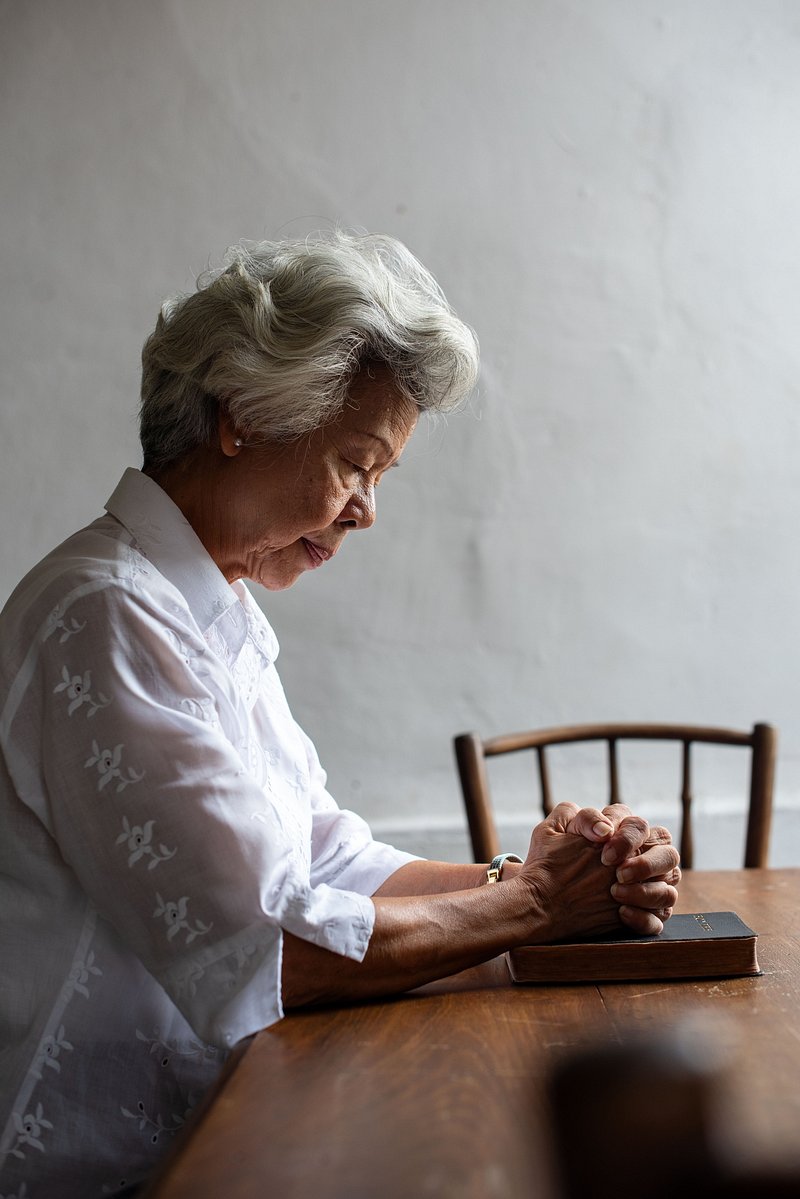 Elderly woman praying quietly. https://www.rawpixel.com/image/26012165/elderly-woman-praying-quietlyView license