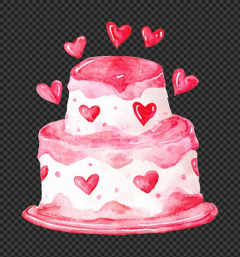 PNG Watercolor cake with red hearts. https://www.rawpixel.com/image/25253501/png-watercolor-cake-with-red-heartsView license
