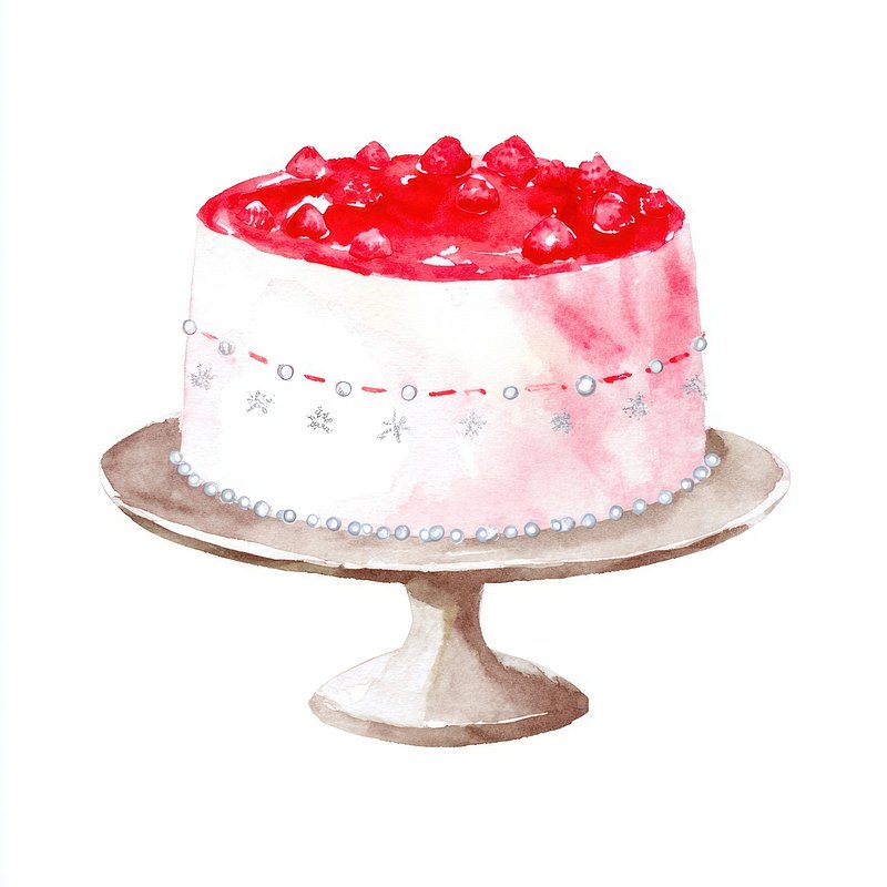 Watercolor cake with cherries. https://www.rawpixel.com/image/25221185/watercolor-cake-with-cherriesView license