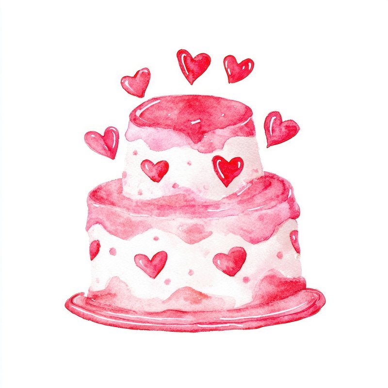 Watercolor cake with red hearts. https://www.rawpixel.com/image/25221191/watercolor-cake-with-red-heartsView license