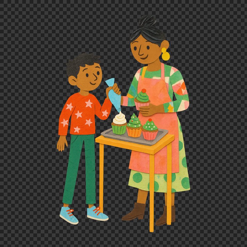 PNG Mother and child baking cupcakes. https://www.rawpixel.com/image/22235472/png-mother-and-child-baking-cupcakesView license