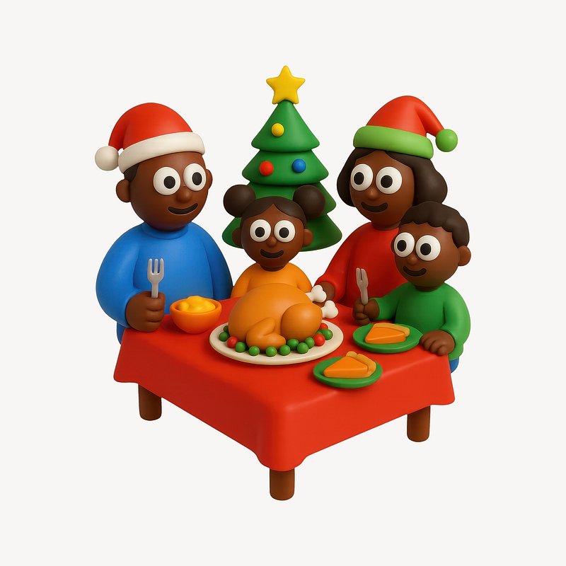 PNG Festive claymation holiday dinner scene. https://www.rawpixel.com/image/22297860/png-festive-claymation-holiday-dinner-sceneView license