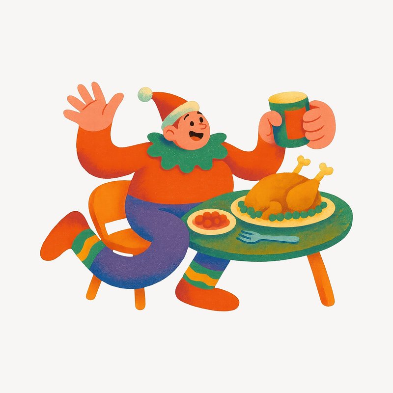 Festive character serving holiday treats. https://www.rawpixel.com/image/22913543/festive-character-serving-holiday-treatsView license