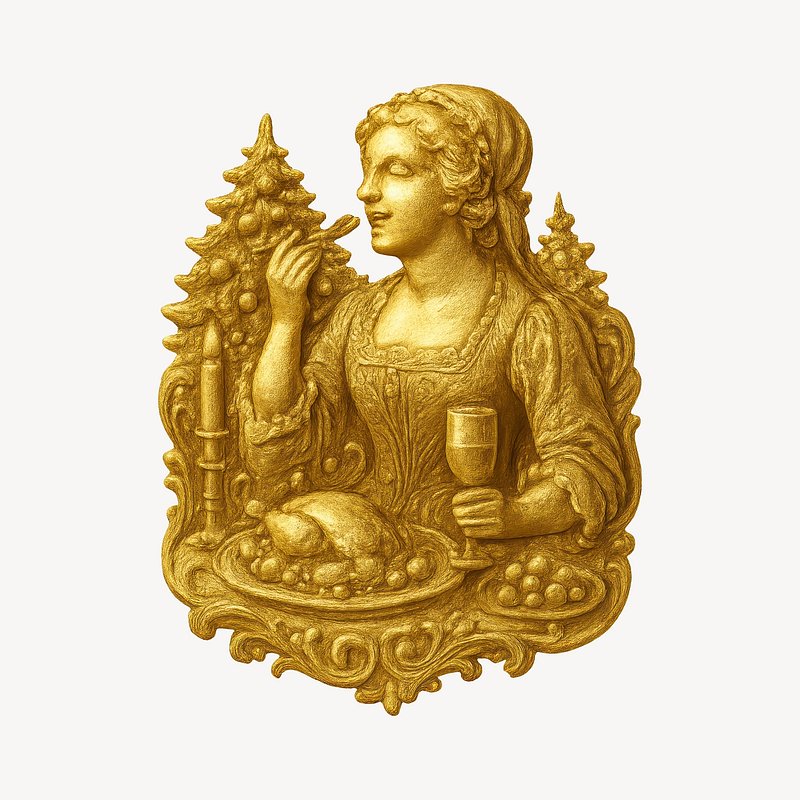 Golden vintage holiday feast artwork. https://www.rawpixel.com/image/22271314/golden-vintage-holiday-feast-artworkView license